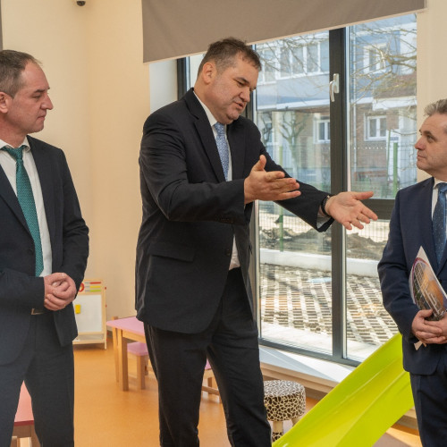 Prima creșă nouă din județul Sibiu, construită în cadrul programului național dedicat unităților de învățământ, finanțat prin Compania Națională de Investiții (CNI), a fost inaugurată în municipiul Mediaș. Este a zecea creșă nouă construită de CNI în țară. Ministrul Dezvoltării, Lucrărilor Publice şi Administraţiei, Cseke Attila, a participat la inaugurarea noii creșe, eveniment cre a avut loc miercuri, 5 martie. „Am construit și am predat comunității din municipiul Mediaș a zecea creșă nouă, construită în România, cu finanțare guvernamentală, prin Ministerul Dezvoltării, din fonduri europene. Creșa asigură condiții moderne pentru 40 de copii, cu spații de joacă interioare și exterioare, dormitoare, bucătărie proprie, într-o clădire colorată, unde o parte din necesarul de energie provine din surse regenerabile”, a transmis Attila. Într-un comunicat transmis de Primăria Mediaș se menționează că aceasta este „singura construcție de acest fel finalizată în județul Sibiu”. Creșa este cuprinsă în rețeaua școlară pentru anul școlar 2025-2026, ca structură a Grădiniței cu Program Prelungit „Pinocchio“ din municipiul Mediaș, precizează reprezentanții municipalității. Construcția, în suprafață de 3.000 de metri pătrați, cuprinde 4 grupe, cu o capacitate totală de 40 de copii, 3 nuclee funcționale - zonă administrativă, zonă destinată copiilor și zona spațiilor tehnico-gospodărești, dormitoare egale cu numărul de grupe, camere de joacă, vestiare și grupuri sanitare, spații pentru luat masa, cabinet medical, precum și spații cu funcțiuni auxiliare: spălătorie, călcătorie, biberonerie, bucătărie instalații electrice, sanitare și termice, iar pe terasa imobilului sunt montate panouri solare cu tuburi vidate și panouri fotovoltaice. De asemenea, au fost amenajate în zonă accesul carosabil și pietonal, parcare aferentă, zone verzi și iluminat. Valoarea totală a proiectului este de 12.880.600.91 lei, cu TVA. „Sunt sigur că, după ce vom parcurge toate etapele de avizare, această creșă va fi neîncăpătoare (...). Mediașul are și alte proiecte în derulare, și aici ne-am bucura dacă ne-ați ajuta cu deblocarea celor două proiecte pe care le derulăm tot prin Compania Națională de Investiții, și aici mă refer la amenajarea unei săli de sport unde lucrările au ajuns undeva la 60%, precum și la amenajarea unui teren de sport. Avem de asemenea în faza de evaluare a ofertelor proiectul pentru un cartier de locuințe ANL, sper să aflăm într-un timp cât mai scurt și câștigătorul (...)”, a declarat primarul municipiului Mediaș, Roman Gheorghe, profitând de prezența mnistrului în orașul pe care îl conduce. CNI are în plan construirea, până la finalul anului, a 75 de astfel de creșe noi în total, în țară. „Suntem în grafic cu acest plan prin care ajutăm familiile tinere”, a precizat ministrul Attila. Și în municipiul Sibiu se află în derulare un astfel de proiect, despre care municipalitatea a anunțat că va fi „cea mai mare creșă din oraș”. Este vorba despre creșa de pe strada Viitorului. Despre acest poriect se discută de cel puțin trei ani. Între timp, au fost organizate două licitații, investiția s-a scumpit cu 3 milioane de lei, iar apoi procedura s-a blocat din cauza unor proceduri birocratice. Ulterior, în octombrie 2024, anunțul cu privire la organizarea licitației pentru proiectarea și construirea a două creșe – în Sibiu și Craiova – a avut deznodământ diferit pentru fiecare proiect. În timp ce creșa din Craiova poate începe, având atribuit contractul pentru ofertantul câștigător, proiectul de la Sibiu mai trebuie să aștepte. Amintim că viitoarea creșă de pe strada Viitorului ar urma să fie cea mai mare astfel de instituție din Sibiu. Aceasta ar urma să fie ridicată pe un teren de 4.500 de mp. Clădirea va avea un singur nivel cu o suprafață utilă de 2.400 de mp, fiind prevăzută atât amenajarea de spații verzi, cât și a unui loc de joacă generos. Funcțional, viitoarea clădire va avea 11 dormitoare, șase camere de joacă prevăzute cu vestiar-filtru și grupuri sanitare, o cantină, grup sanitar pentru persoanele cu dizabilități, zonă de primire, cabinet medical cu izolator, zonă de birouri și camere tehnice. Pe acoperiș este solicitată amplasarea de panouri voltaice și pentru prepararea apei calde, dar și amenajarea de spații verzi. Fotografii: Primăria Mediaș / Cseke Attila Abonează-te la canalul de WhatsApp al Turnul Sfatului pentru a afla în timp real știrile relevante de la Sibiu: accesează linkul de aici și apasă opțiunea Follow (Urmăriți). Dacă ți-a plăcut, distribuie articolul și prietenilor tăi Tag-uri: cseke attila la medias , cresa noua medias cseke attila , creșă nouă mediaș , foto Vizualizari: 1177